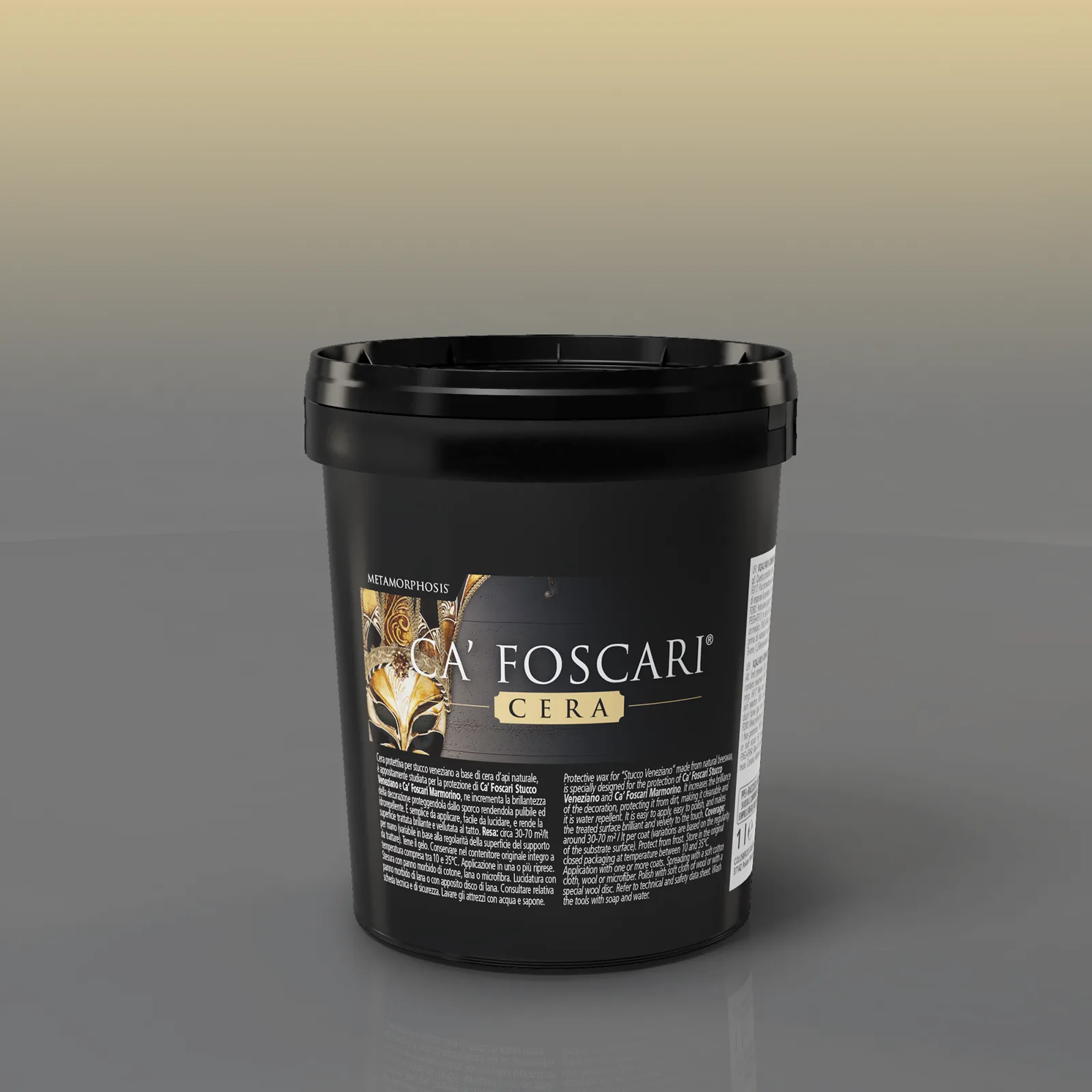 Ein Schutzwachs auf der Basis von natürlichem Bienenwachs, speziell entwickelt für den Schutz von Ca‘ Foscari Stucco Veneziano und Ca‘ Foscari Marmorino. Es steigert den Glanz der Dekoration, schützt vor Schmutz, macht sie wasserabweisend und ermöglicht eine einfache Reinigung. Es lässt sich leicht auftragen und polieren, wobei die behandelte Oberfläche glänzend und samtig wird.
