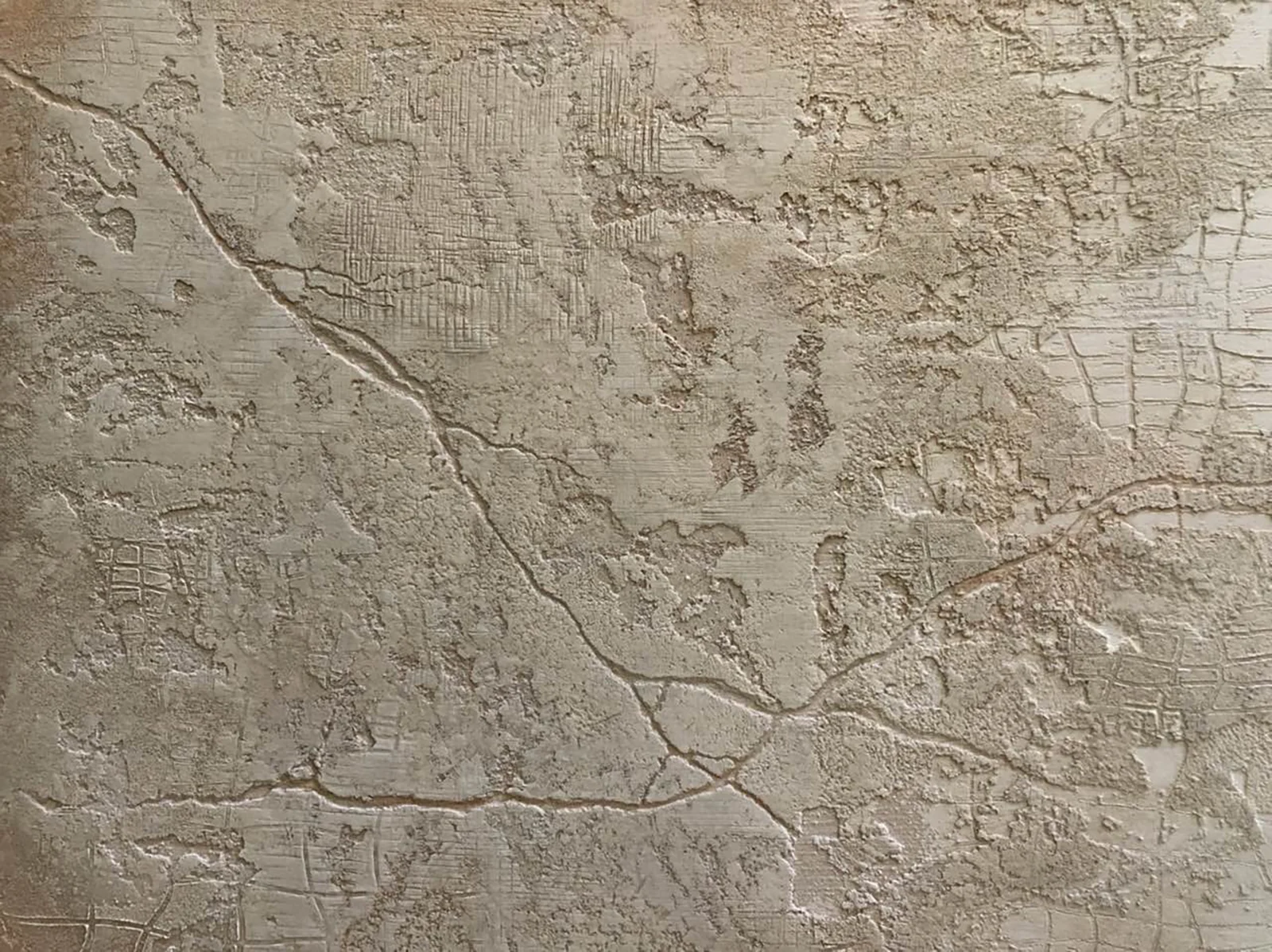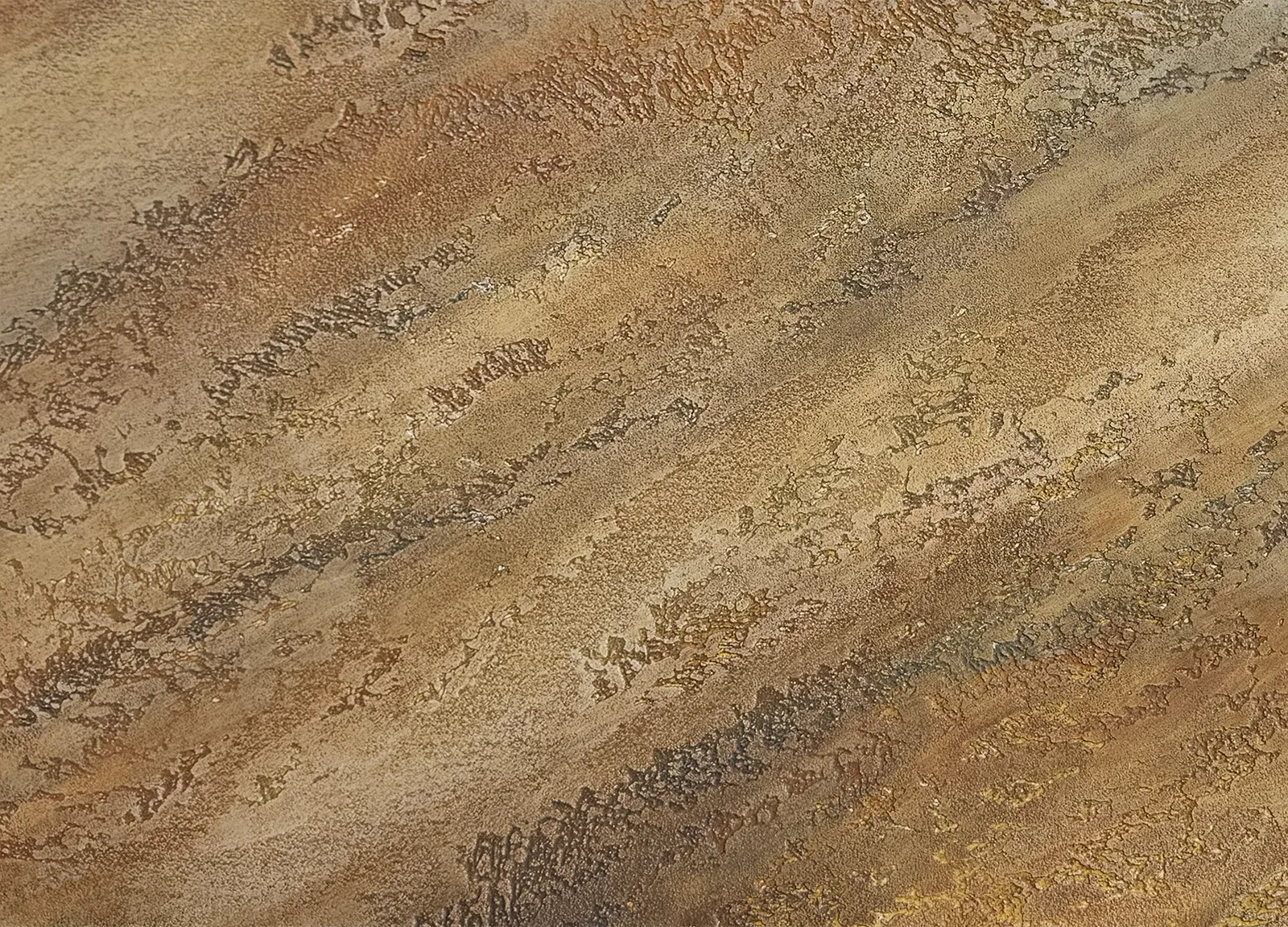 - Mineral Cycle 1: Ca’ Foscari Tintoretto, applied with steel trowel and worked with doormat pad. Once dry, finish with more colors of Nirvana or Cyberlux to sponge going to fill grooves. Final protection with Cera or Vetripur.