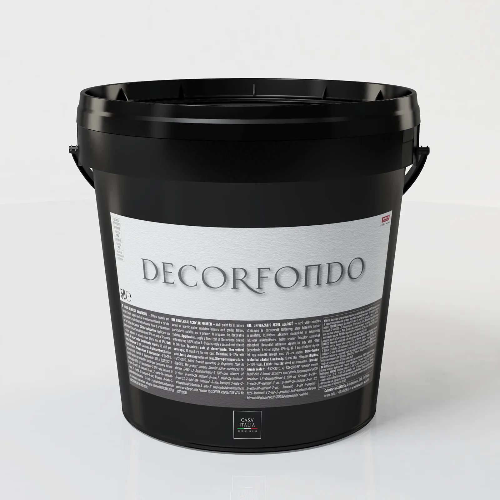 Pittura murale per interni a base di leganti acrilici in emulsione acquosa e cariche a granulometria controllata, appositamente progettata come fondo di preparazione alle finiture decorative Casa Italia.